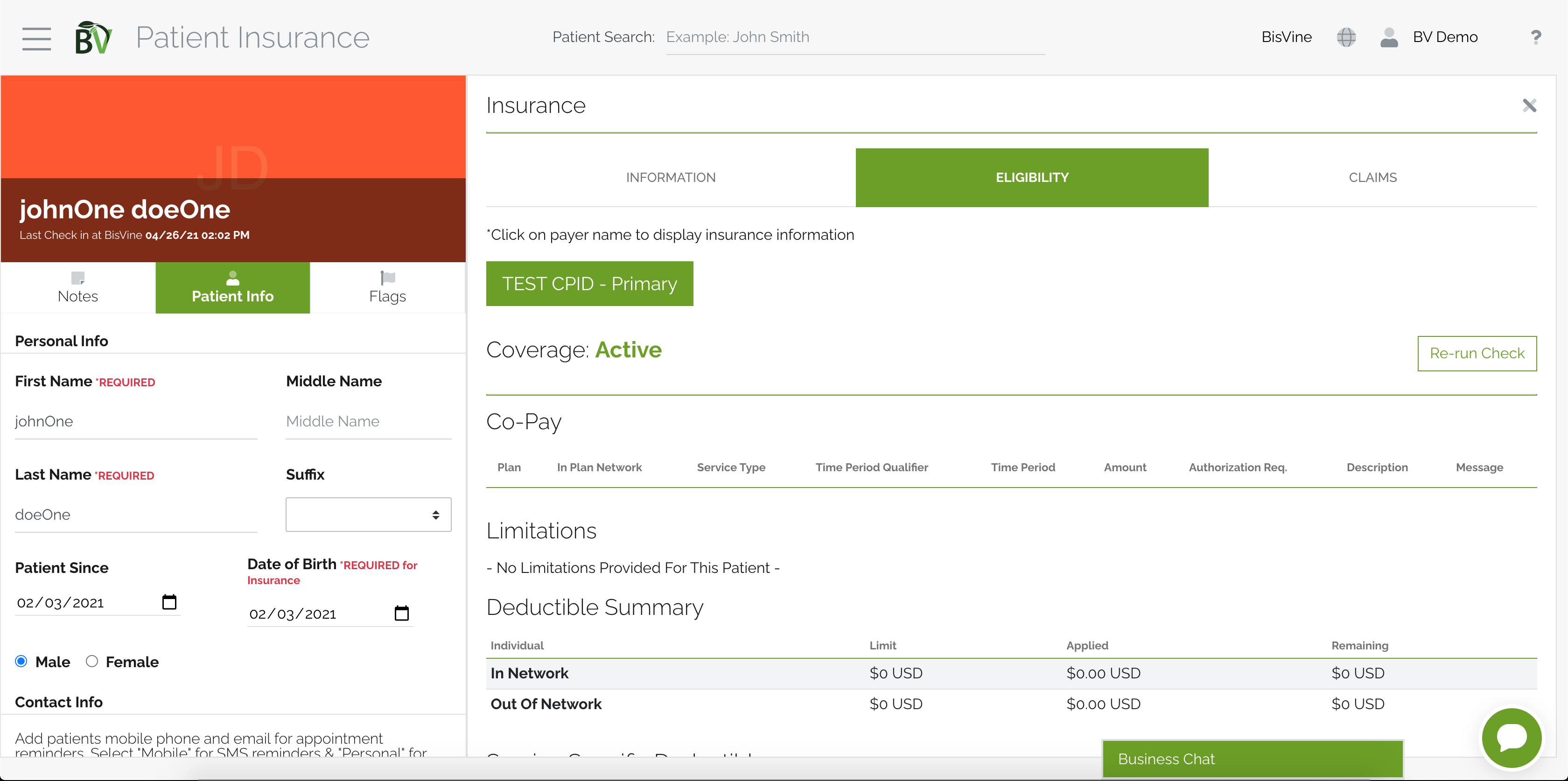 - Insurance eligibility expansion (service specific deductibles, service specific out of pocket, secondary payers ie. Aflac / Medicare) **When provided by payer